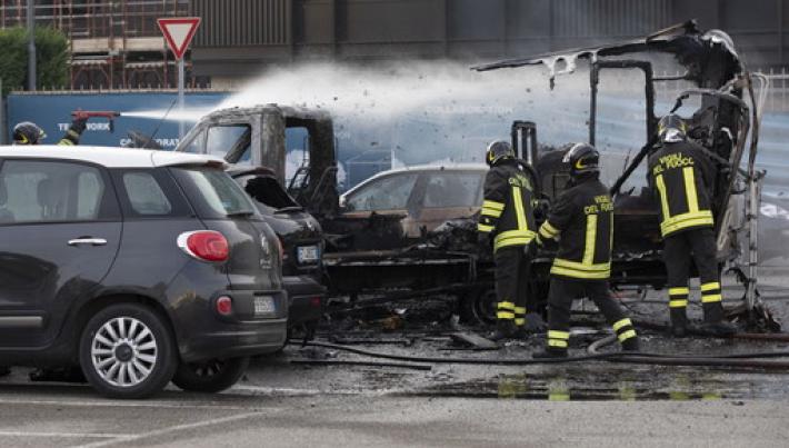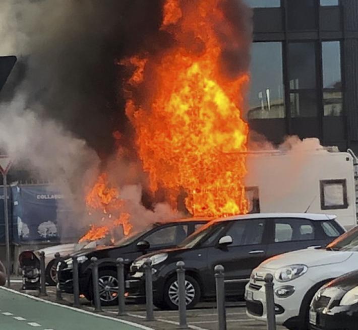 Incendio nel tardo pomeriggio nel parcheggio di via San Leonardo: in fiamme un camper. Sono intervenuti sul posto i Vigili del fuoco.