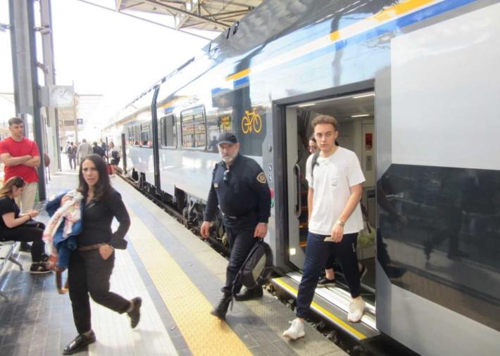 Era diverso dal solito il treno da Bologna che è arrivato in stazione oggi alle 16.03: era un «Rock» nuovo fiammante, il convoglio che Trenitalia ha scelto per rilanciare il trasporto regionale, rendendo più confortevoli gli spostamenti sui percorsi brevi. Costruito in Italia da Hitachi e Alstom, assicura il massimo comfort di viaggio a chi ha scelto il treno per lavoro, studio, svago o turismo. Entro poche settimane entreranno in servizio altri convogli «Rock» e la loro presenza diventerà sempre più familiare lungo la linea Bologna-Milano. Il convoglio è a due piani e nella sua composizione più lunga può trasportare 1400 persone, di cui 700 sedute.