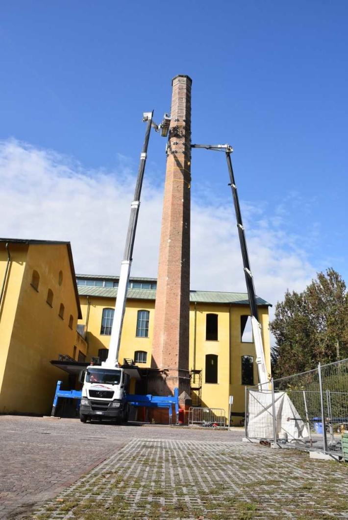 Oggi la ciminiera è più sicura di prima, come ha sottolineato l'Assessore ai Lavori Pubblici, Michele Alinovi, che nei giorni scorsi ha effettuato un sopralluogo assieme all'Amministratore Unico del Consorzio Paganini, Dino Dall'Aglio, ed al progettista dell'intervento, ingegner Luca Speroncini.