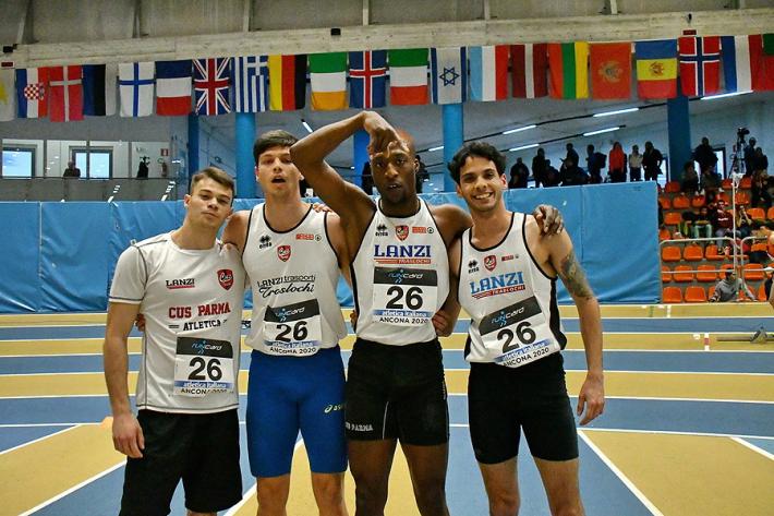 Steve Abe, Alessandro Battilana, David Palladini e Lorenzo Tonna: oro staffetta maschile Campionato italiano promesse Indoor (staffetta 4 X100)