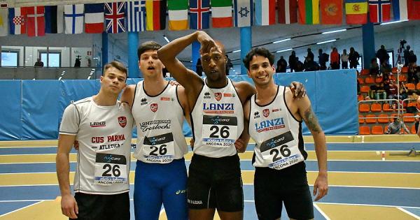 Steve Abe, Alessandro Battilana, David Palladini e Lorenzo Tonna: oro staffetta maschile Campionato italiano promesse Indoor (staffetta 4 X100)
