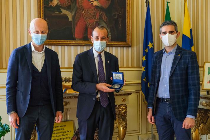 Il Questore, Gaetano Bonaccorso ha fatto tappa in municipio, prima di lasciare la città ed assumete un altro incarico altrove. Lo hanno accolto il sindaco, Federico Pizzarotti, e l'Assessore alla Sicurezza, Cristiano Casa, che gli hanno rivolto i ringraziamenti per l'importante lavoro svolto in città, proprio in tema di sicurezza, in sinergia con il Comune di Parma.  Si è trattato di un incontro franco e costruttivo che si è concluso con la consegna al Questore uscente del Sigillo della Città di Parma.