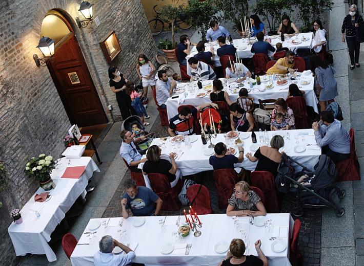 Un rito. Un rito che si è compiuto anche ieri sera, con le tavolate che sono ricomparse nelle strade per la tradizoionale tortellata di San Giovanni. Ad attendere la rugiada, tantissimi parmigiani che hanno riempito i tavolini dei ristoranti e i posti a disposizione - distanziati - on the road da via Bruno Longhi alla Ghiaia, da borgo del Correggio a borgo delle Colonne. Ecco una carrelata di foto per raccontare la sera più amata dai parmigiani.