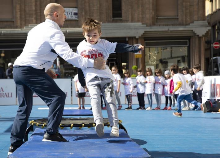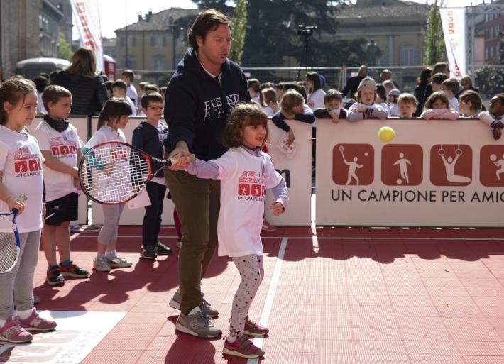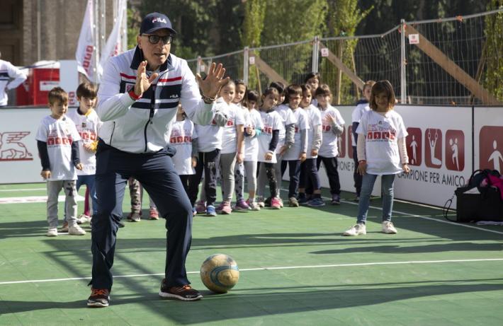 Ad incontrare i bambini delle scuole (poco più di un centinaio quelli presenti), sono stati Adriano Panatta e Ciccio Graziani, Yuri Chechi e Andrea Lucchetta. Veri e propri miti dello sport azzurro che, nei quattro "campi gara" allestiti per l'occasione, hanno impegnato i partecipanti in una serie di attività legate alle rispettive discipline: tennis, calcio, ginnastica artistica e pallavolo. (Vittorio Rotolo )