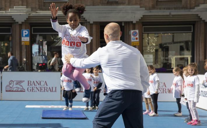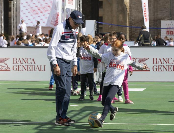 Grande entusiasmo questa mattina in borgo delle Cucine per "Un campione per amico", il tour sportivo-educativo promosso nelle diverse città italiane da Banca Generali e che ha fatto tappa a Parma.