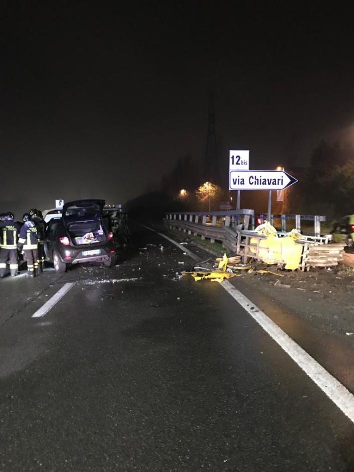 Sulla tangenziale sud, all'altezza dello svincolo di via Chiavari, c'è stato un tamponamento tra un'auto guidata da una donna e un furgone alla cui guida c'era un uomo. Sul posto sono intervenuti i vigili del fuoco e la polizia municipale. I due sono stati portati all'ospedale con ferite di media gravità.