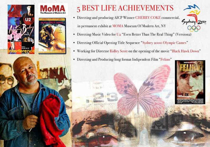 Graphic designer di successo, alle spalle campagne pubblicitarie famose tra cui Coca Cola e Toyota, Ericsson e Nike, Intel e Nissan, Blockbuster e Pacific Bell, Apple e Avirex, senza contare due spot, trasmessi anche nei cinema, per i nuovi notebook Vaio 2000 della Sony, ha firmato anche la regia delle riprese per la sigla ufficiale delle Olimpiadi di Sydney.