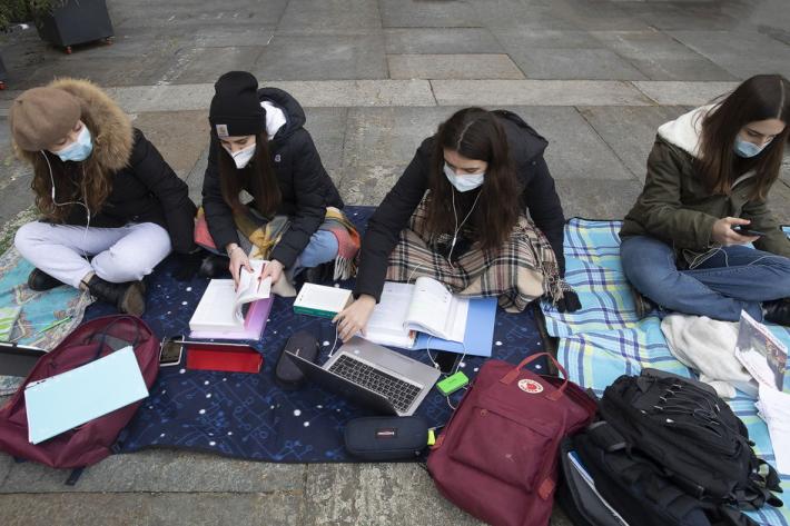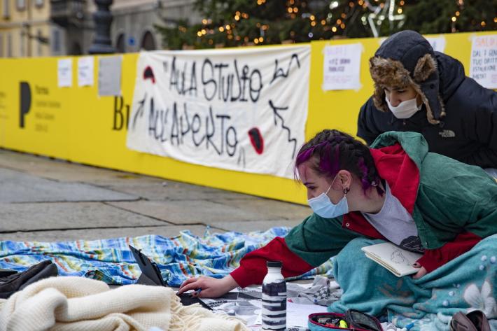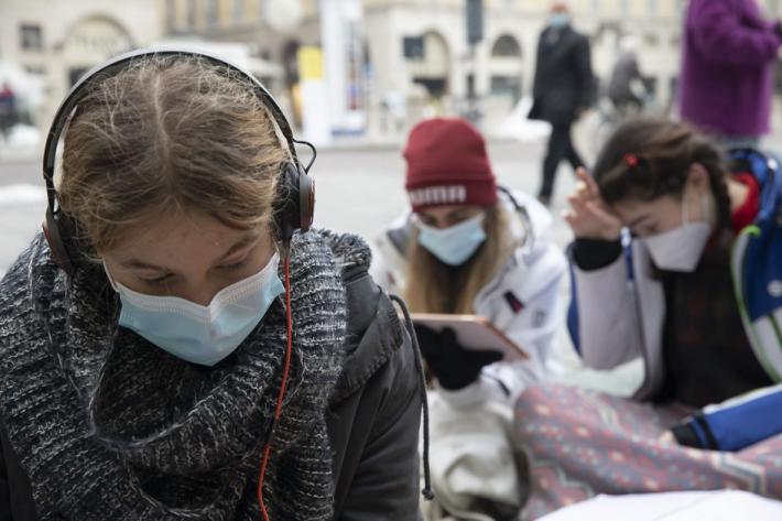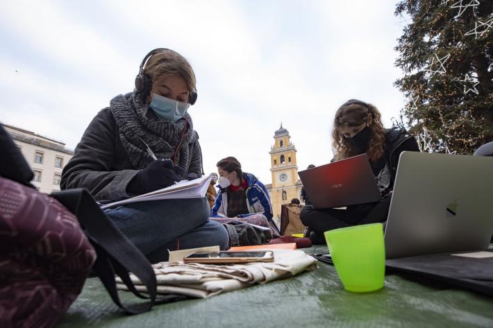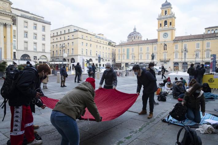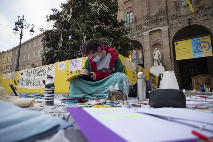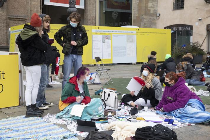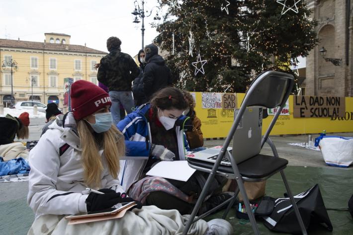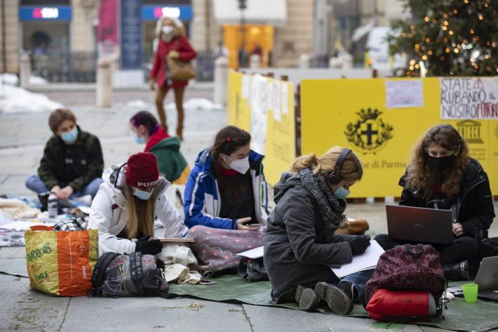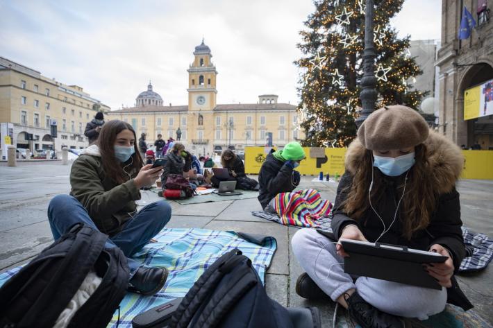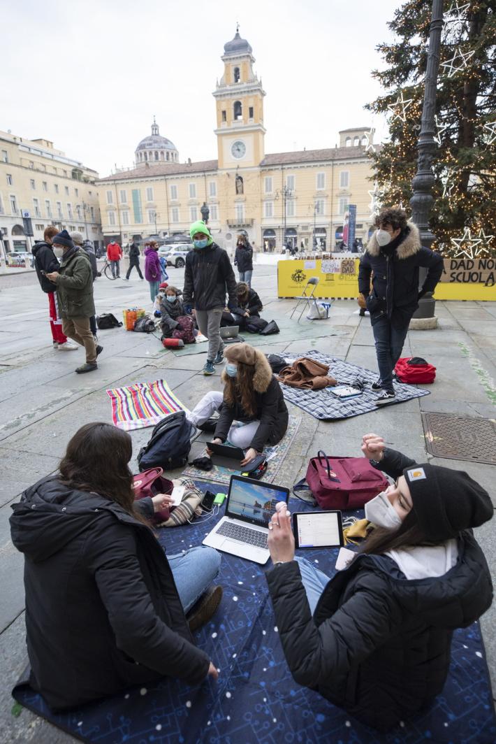 Questa mattina diversi alunni degli istituti superiori di Parma e Provincia si sono dati appuntamento in piazza Garibaldi per seguire le lezioni a distanza e manifestare pacificamente per chiedere il ritorno a scuola in presenza.