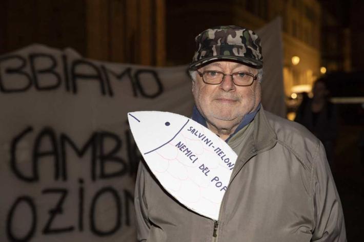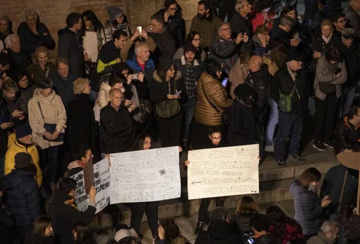 Sul selciato una rappresentanza trasversale. Tanti giovani ma anche tanti adulti e famiglie sulla scia dei diversi appuntamenti che, in questi giorni, si sono susseguiti in Italia dopo il primo flash mob anti-Lega in Piazza Maggiore a Bologna nella serata dell’avvio della campagna elettorale di Lucia Borgonzoni al Paladozza alla presenza del segretario del Carroccio, Matteo Salvini.