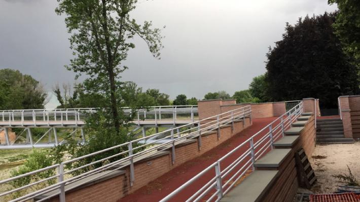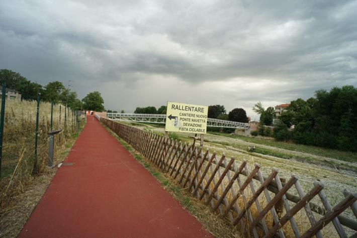 E' stata riaperta la pista ciclopedonale che segue l'argine destro del Baganza e passa accanto al nuovo ponte di via Navetta che aspetta di essere inaugurato.