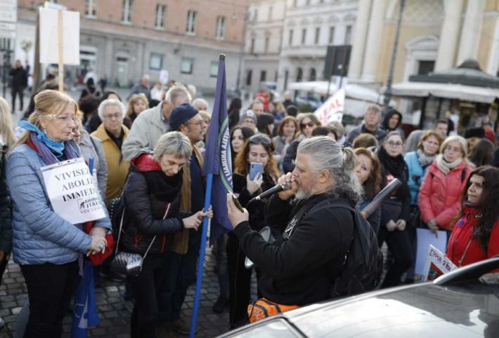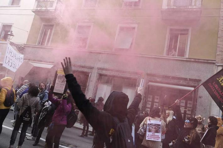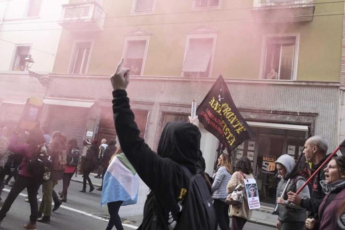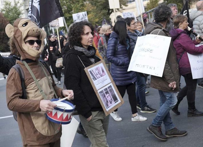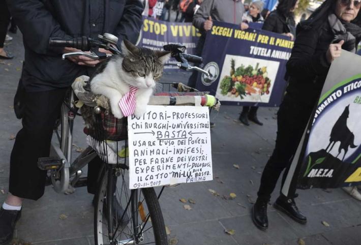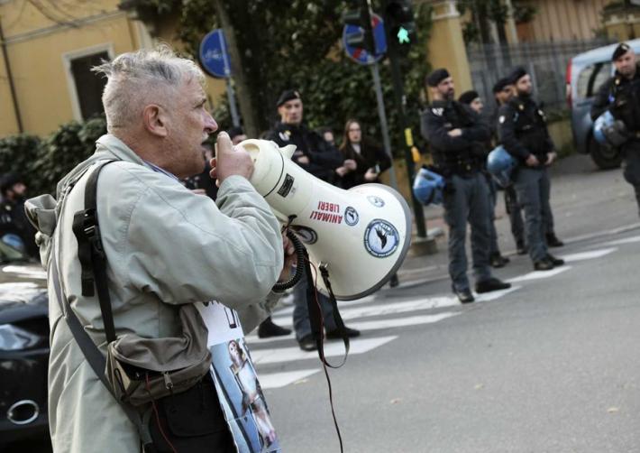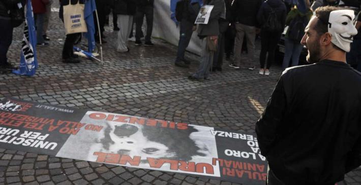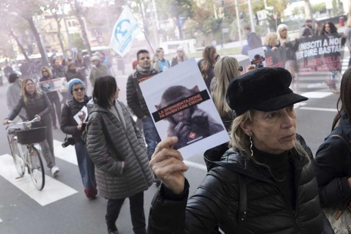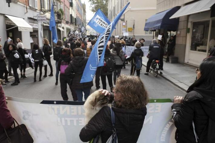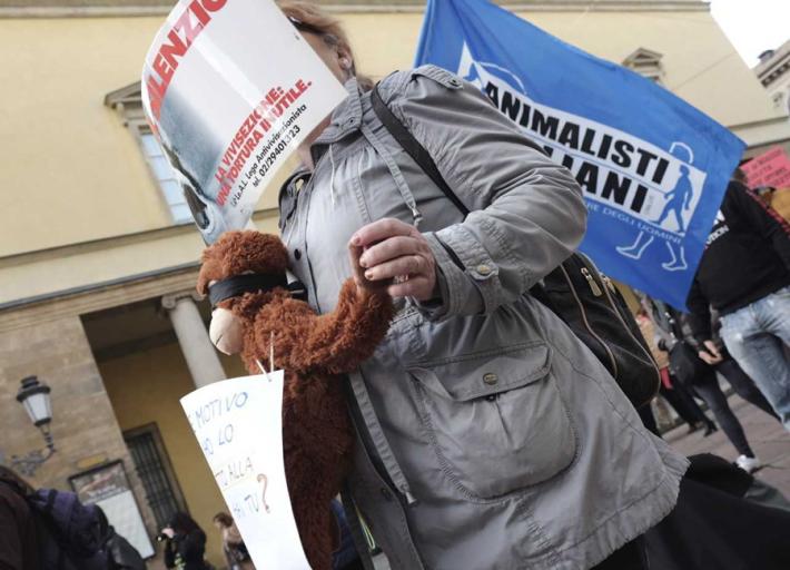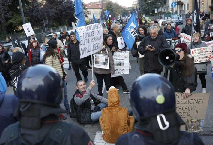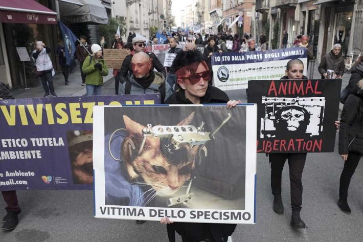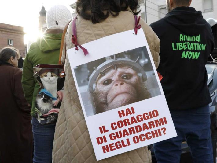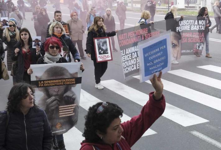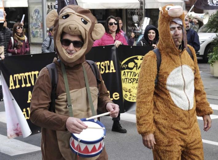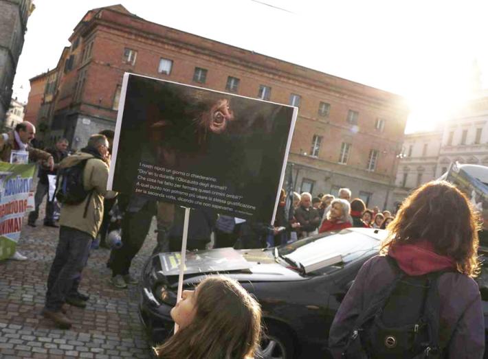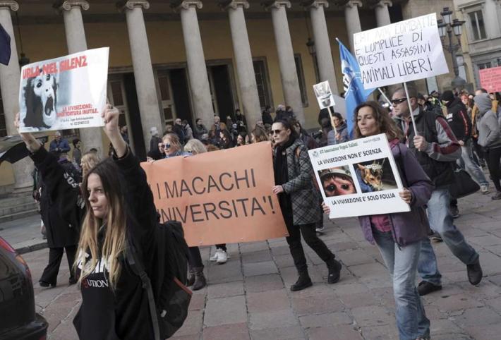Corteo a Parma per chiedere di revocare l'autorizzazione alla sperimentazione sui macachi "Macachi Liberi" che ha attraversato il centro cittadino.
