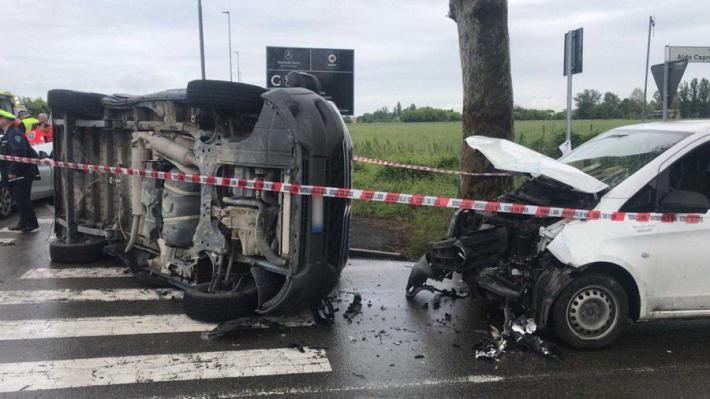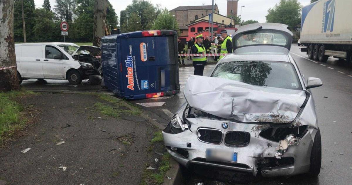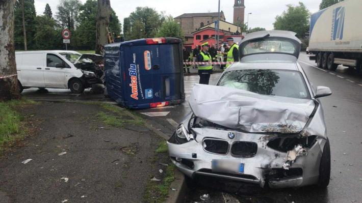 Spettacolare incidente questa mattina a San Prospero all'incrocio fra via Carra e via Emilio Lepido. Per circostanze ancora da chiarire un furgone si è scontrato con un'autovettura e si è ribaltato. Sul posto sono intervenuti i vigili del fuoco e tre ambulanze del 118. Le tre persone coinvolte sono state soccorse: una in condizioni di media gravità e due con danni fisici di lieve entità.