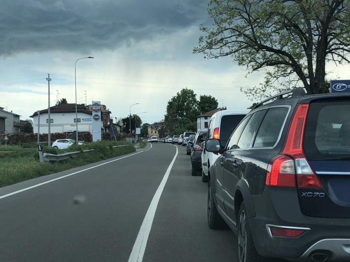 Il traffico intenso sta provocando code anche sulla via Emilia. Nella foto di un lettore la coda verso Parma che sta intasando la via Emilia e che inizia da Sant’Ilario. Sono segnalati rallentamenti e code anche da Parma in direzione di Fidenza.