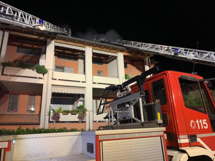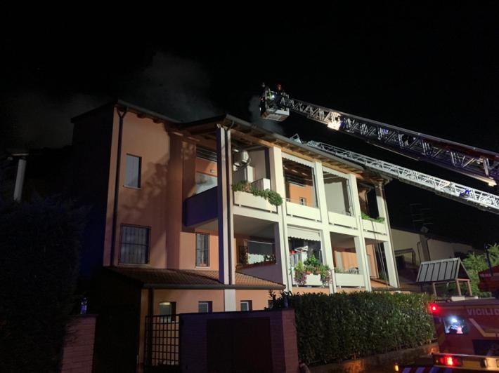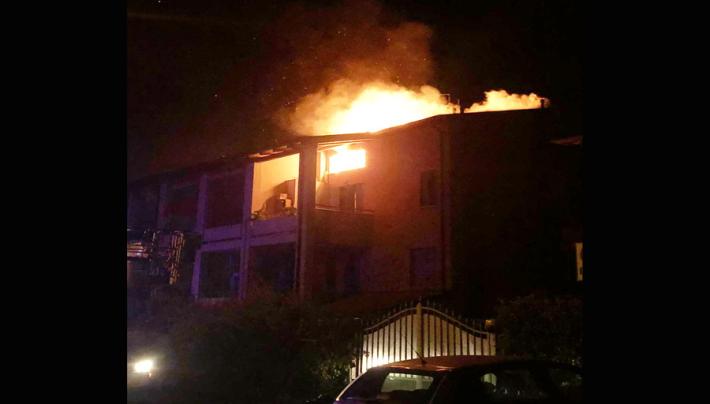 Un violento incendio si è sviluppato ieri notte attorno alle 23 nel sottotetto di un condominio di via Brigate Garibaldi a Pontetaro. In poco tempo le fiamme hanno avvolto il tetto e due appartamenti costringendo tutti i residenti dello stabile a fuggire in strada. In pochi minuti sono arrivati davanti alla palazzina i vigili del fuoco di Parma e Fidenza che hanno lavorato tutta la notte per domare il rogo, e viste le dimensioni dell'incendio, anche gli uomini della protezione civile, i carabinieri e l'ambulanza della Croce Rossa di Pontetaro. Sul
