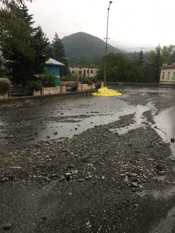 Grandinate e fortissimi temporali si sono abbattuti sull'Appennino parmense fra il tardo pomeriggio di ieri e la sera. A Bardi una strada si è trasformata in un "torrente" (un impressionante video postato sui social è diventato virale) e si registrano allagamenti in scantinati e negozi.