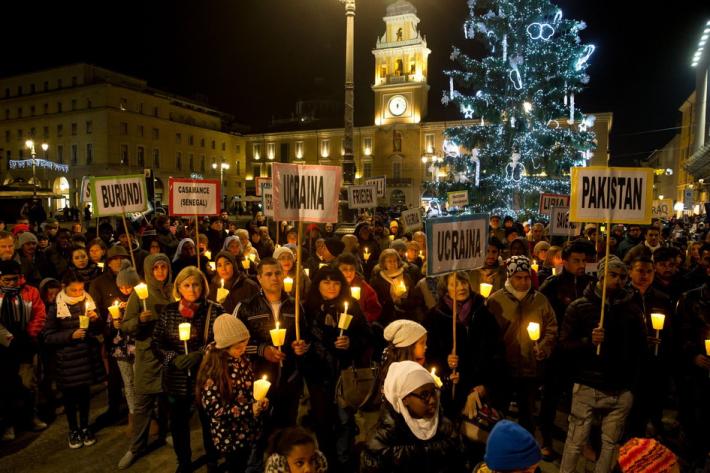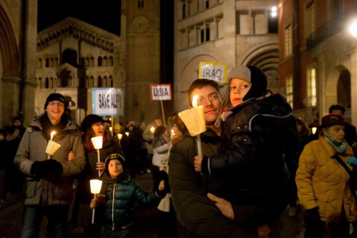 Molti i parmigiani che oggi pomeriggio hanno preso parte alla tradizionale Marcia della pace, promossa dalla Comunità di Sant’Egidio. Al termine della messa in Cattedrale, presieduta dal vescovo Enrico Solmi, è partito il corteo silenzioso che ha percorso il tratto di strada che collega la chiesa madre della diocesi a piazza Garibaldi.