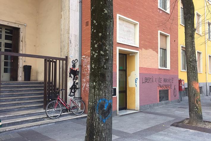 Ancora scritte sui muri del Marconi. Come documentato in diverse altre occasioni, le foto di Luca Bertozzi mostrano nuove scritte che qualche vandalo ha tracciato sui muri dell'Oltretorrente. Una in particolare incita alla violenza: "Spara a Salvini e mira bene".