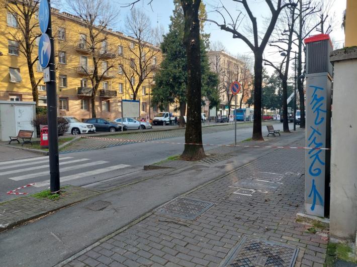 Via Osacca chiusa questa mattina per la potatura degli alberi. Un cittadino ci invia le foto e puntualizza: "Senza preavviso".