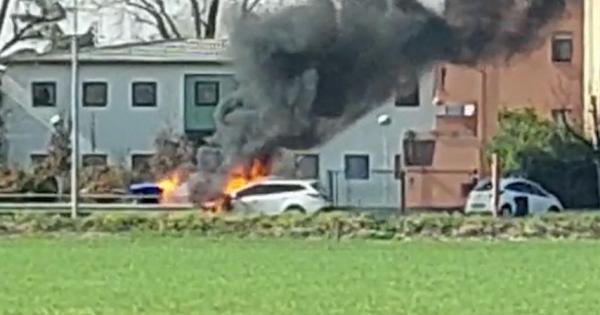 Un'auto ha preso fuoco questa mattina a Baganzola.