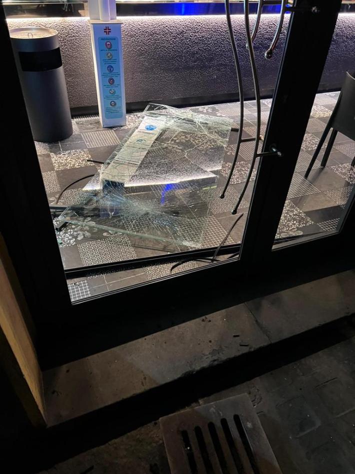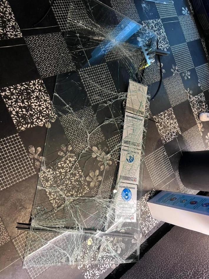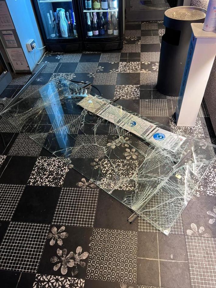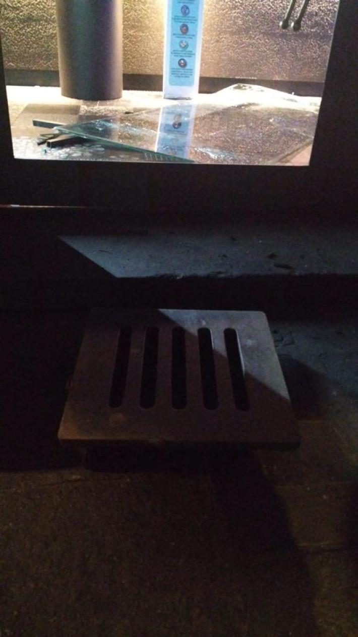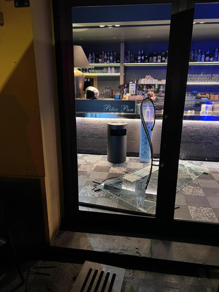 La porta che dà sul piazzaletto in frantumi, coi vetri dappertutto e il passaggio libero per andare in cerca di bottino. Come era accaduto per il bar di Pepèn, i soliti ignoti (o il solito) hanno utilizzato un tombino lanciato contro l'obbiettivo. E una volta entrati hanno fatto un bottino da 5mila euro.