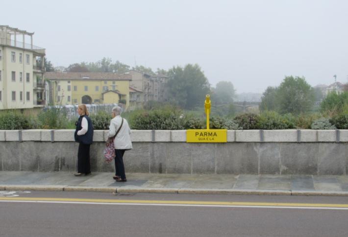 Sono stati rimossi tutti i cartelli gialli e bianchi «Parma di là dall’acqua» e «Parma di qua dall’acqua» installati nello scorso settembre sul ponte di Mezzo, nell’ambito degli eventi di Parma Capitale Italiana della Cultura. Sin dalla sua apparizione, sui social questa cartellonistica ha diviso i parmigiani in favorevoli e contrari. Rimossi anche i due cannocchiali gialli che si trovavano a metà del ponte.
