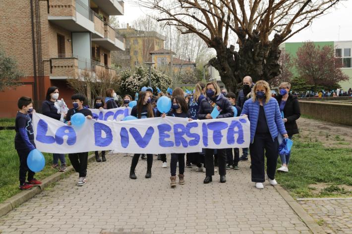Tantissime bandierine e palloncini blu hanno attraversato il Parco Ettore Majorana di Via Newton. L'assessore all'Educazione Ines Seletti e la Dirigente scolastico Paola Piolanti insieme ad alcuni bambini hanno aperto la marcia. Una marcia a basso impatto sonoro con l'uso di strumenti realizzati durante i laboratori in classe. I compagni della sede distaccata della Zerbini hanno raggiunto il Parco dedicato a Tommy. Presenti anche le mascotte di Fondazione Bambino Autismo di Fidenza.