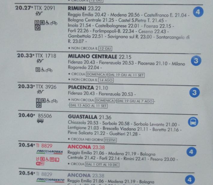 E così alle 20.35 per i parmigiani c’è questo collegamento ferroviario diretto con la Sicilia. Sono necessarie 20 ore e 20 minuti per arrivare alle 16.55 a Palermo e poco più di 19 ore per arrivare alle 15.47 a Siracusa. Il tempo non è poco, però c’è la comodità di non dover mai cambiare treno lungo tutto il tragitto.