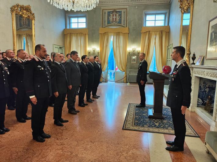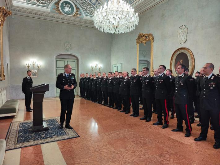 Visita al Comando Provinciale dei Carabinieri di Parma del nuovo Comandante della Legione Carabinieri “Emilia Romagna”, Generale di Brigata Massimo Zuccher che, accolto dal Comandante Provinciale Colonnello Pasqualino Toscani, ha incontrato nelle sale di rappresentanza del Palazzo Ducale tutti gli Ufficiali dell’Arma di Parma, i Comandanti delle 36 Stazione e dei Reparti Speciali dell’Arma (Gruppo Carabinieri Forestali, Raggruppamento Investigazioni Scientifiche, Gruppo Tutela Agroalimentare, Nucleo Antisofisticazioni e Sanità e Nucleo Ispettorato del Lavoro).