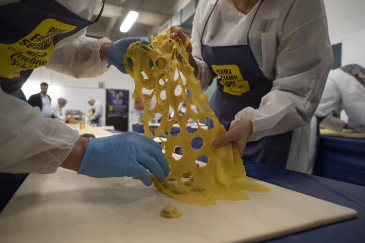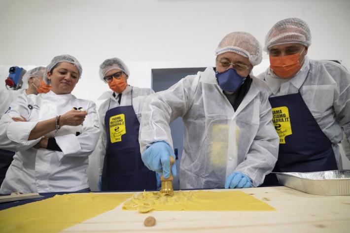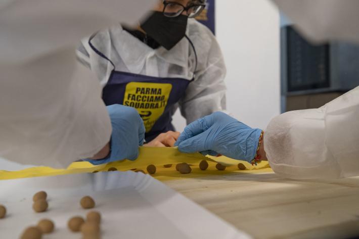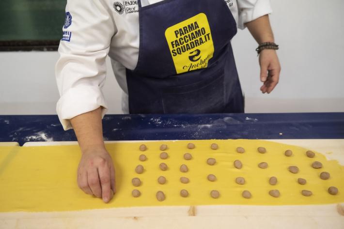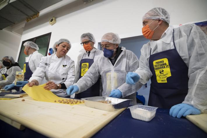 L'anolino solidale si allarga. Per la prima volta i volontari che si sono adoperati per realizzare questo piatto emblematico e gustoso della nostra cucina sono stati alcuni detenuti del carcere di via Burla, guidati dal direttore della struttura Pappalardo. E tutto l'apparato di realizzazione si è spostato proprio in via Burla. Ad aiutarli le autorità di Parma: dal sindaco Guerra al vescovo Solmi, il presidente della provincia Massari, il presidente del consiglio comunale Alinovi, il consigliere regionale Daffadà, il direttore dell'Asl Fabi, la vicepresidente di Conad centro-nord Rosanna Cattini, la presidente di Csv Emilia Dondi il presidente del Consorzio di solidarietà sociale Faccini, e un gruppo di dipendenti della Chiesi.