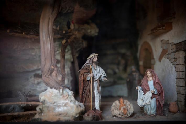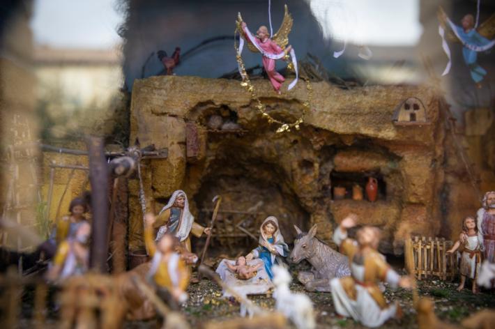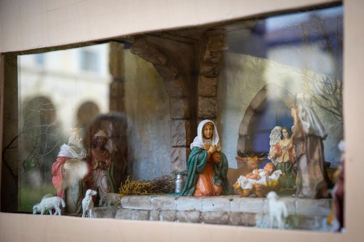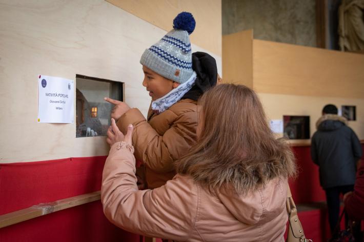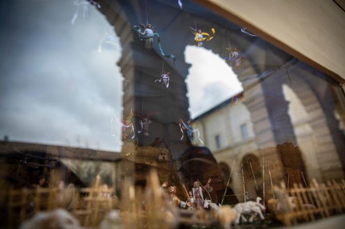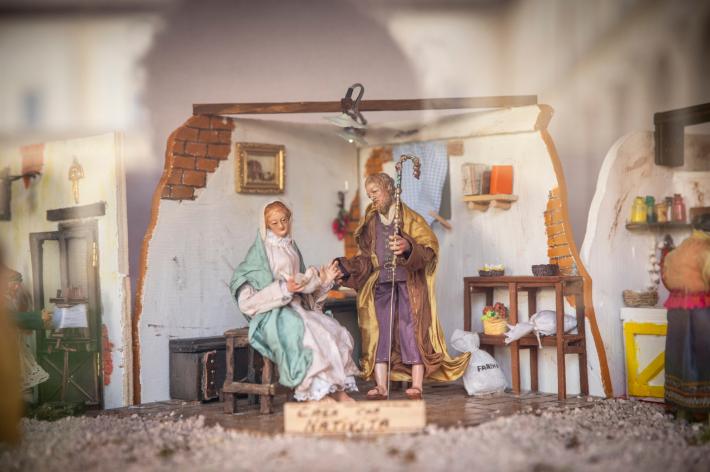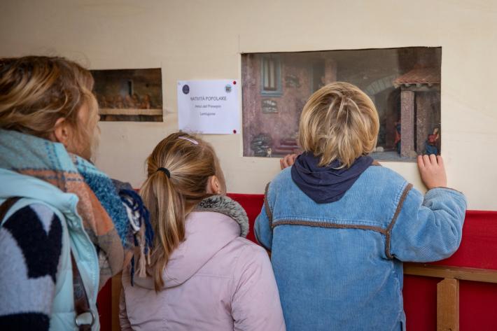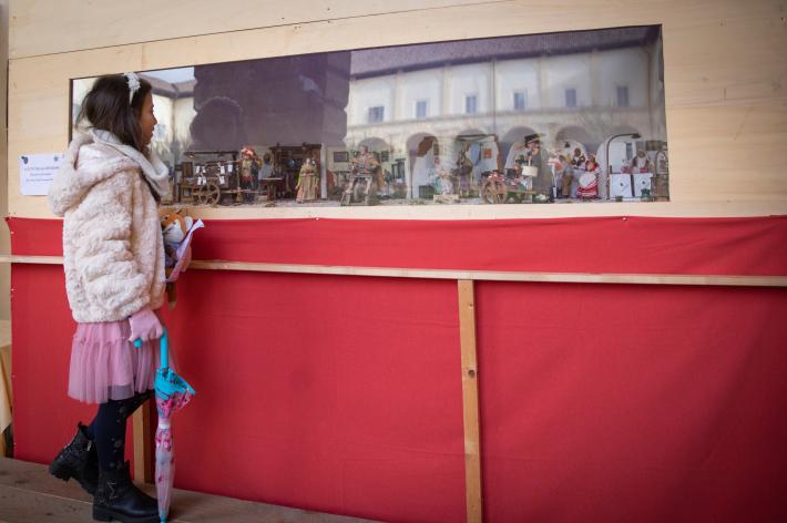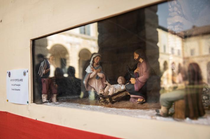 I 33 presepi in mostra lungo il porticato vengono in gran parte dal Nord Italia, ma rappresentano la Natività interpretata in tutte le sue forme, dal presepe tradizionale orientale a quello napoletano.