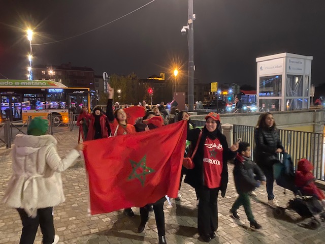 Festa anche per la comunità marocchina di Parma per la vittoria del Marocco ai Mondiale che vale la semifinale. In via Mazzini tifose marocchine stanno sfilando con le bandiere del loro Paese.