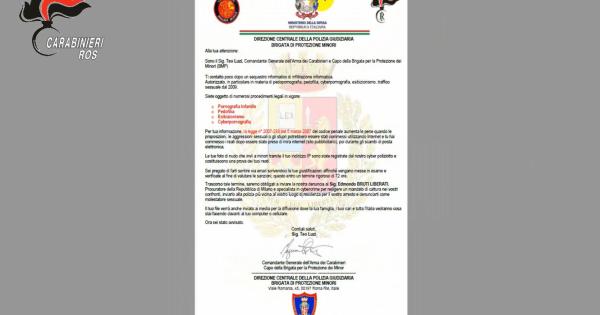 L'estorsione consiste nell'invio di e-mail che contengono false convocazioni di giustizia per reati di tipo pedo-pornografico. Queste e-mail minacciavano conseguenze giudiziarie e la diffusione mediatica delle false accuse: la vittima è stata così costretta al pagamento di circa 5mila euro per una risoluzione bonaria della vicenda.
