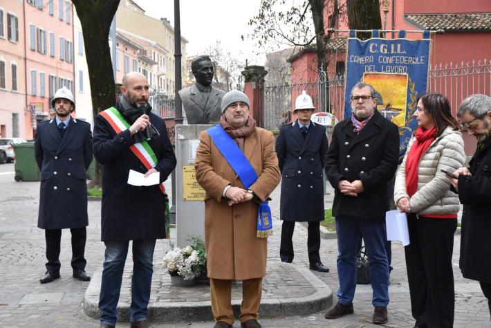 Insieme hanno deposto un omaggio floreale ai piedi dell'effige dell'eroe degli Arditi del Popolo e una corona d'alloro presso la targa di Borgo Pietro Cocconi.