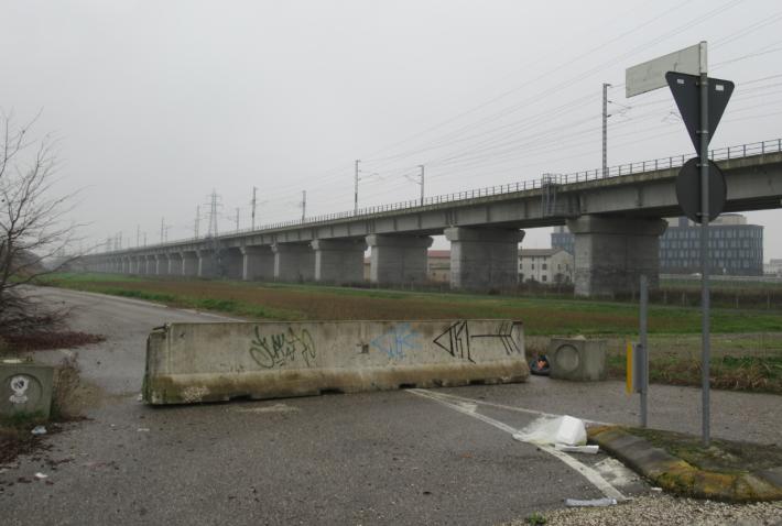 La conferma che la strada non sia dissestata viene dal fatto che nel senso opposto non c’è uguale segnaletica. I problemi, comunque, qui non mancano: dopo qualche centinaio di metri c’è una rotonda dalla quale si dovrebbe imboccare, a destra e a sinistra, via Versailles. Invece i due accessi sono sbarrati perché a sinistra la strada nel 2016 è stata interessata da un cedimento del manto stradale (non ancora riparato) e a destra la strada non è stata ancora interamente realizzata.