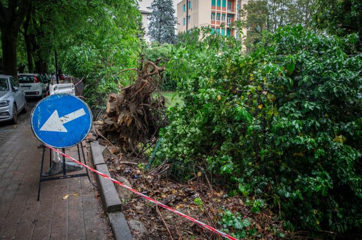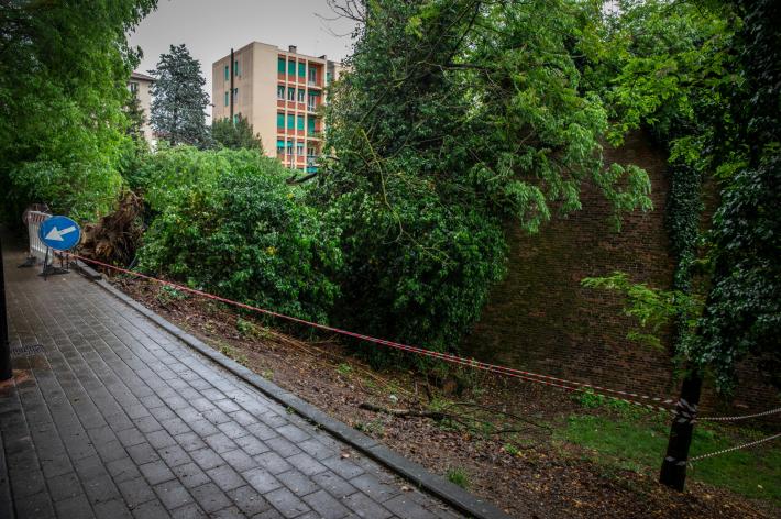 Domenica il crollo della pianta dell'Orto botanico su via Farini, oggi un altro albero ha avuto la stessa sorte. Si tratta di un grande albero caduto in viale delle Rimembranze, finito sul muro della Cittadella.