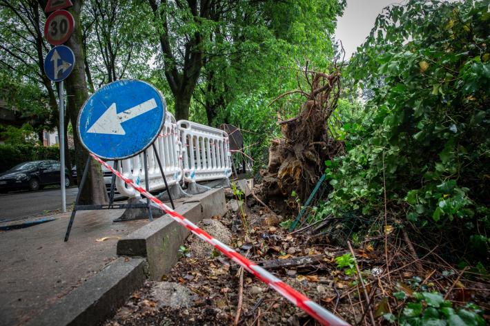Per fortuna in quel momento non stava passando nessuno, e anche le auto in sosta non sono state "toccate" nella caduta della pianta.