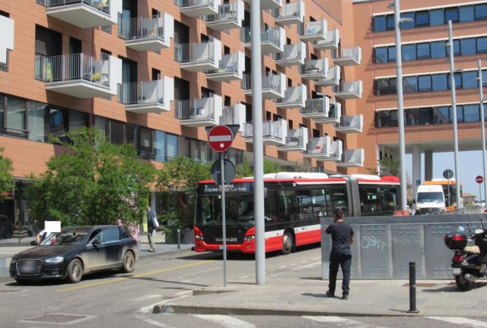 «Scenetta» come succede frequentemente, oggi poco prima di mezzogiorno, vicino all’entrata posteriore della stazione di Parma: un’auto in sosta vietata impedisce la svolta al maxibus della linea 7 (con dietro la coda di altri veicoli bloccati), risuona la tromba bitonale del mezzo pubblico per richiamare l’attenzione dell’autista che chissà dov’è, e le porte del bus si aprono per far scendere i passeggeri diretti in stazione.