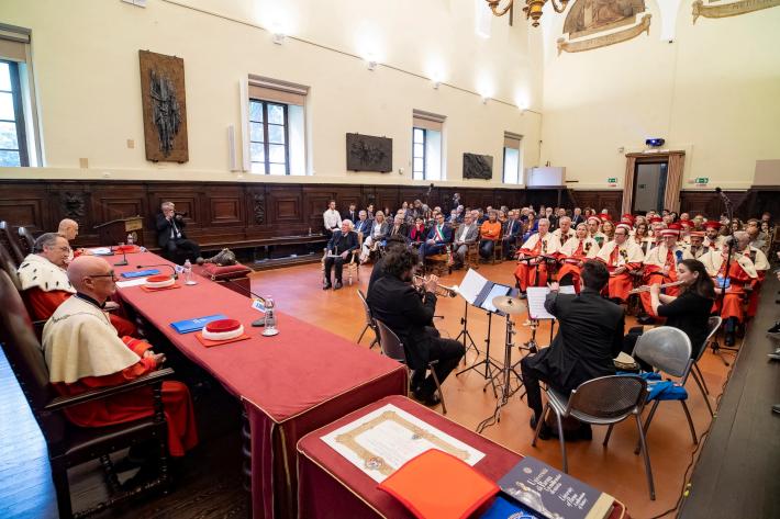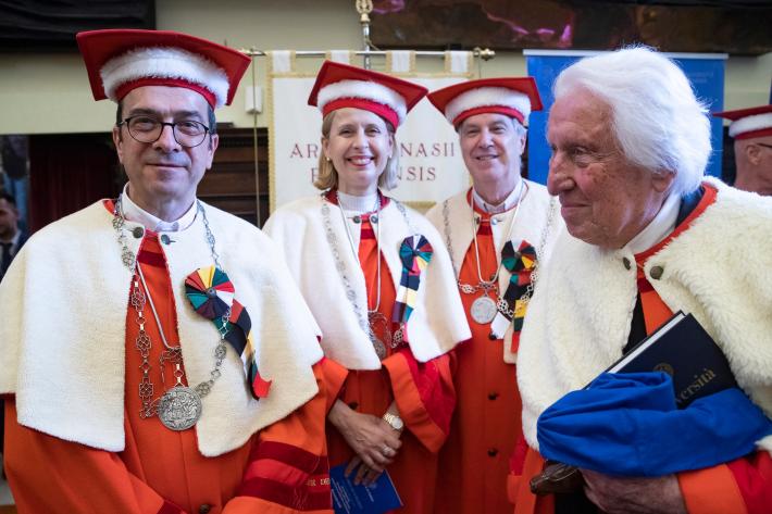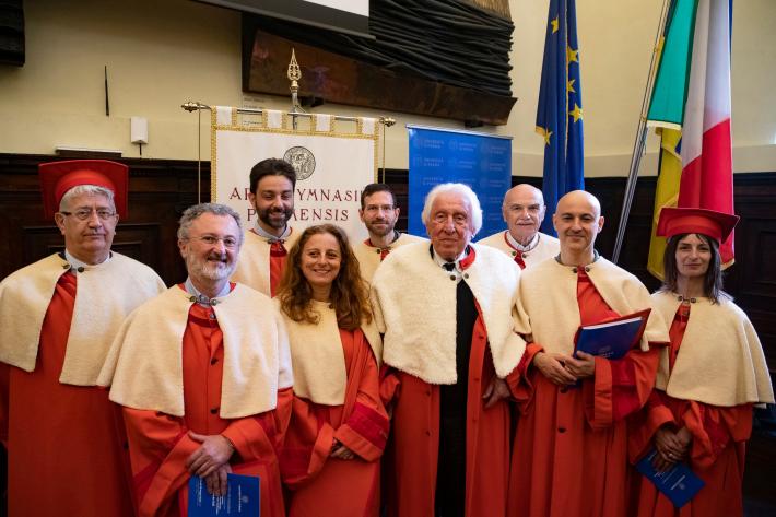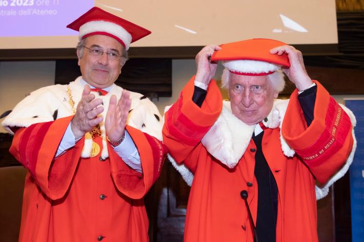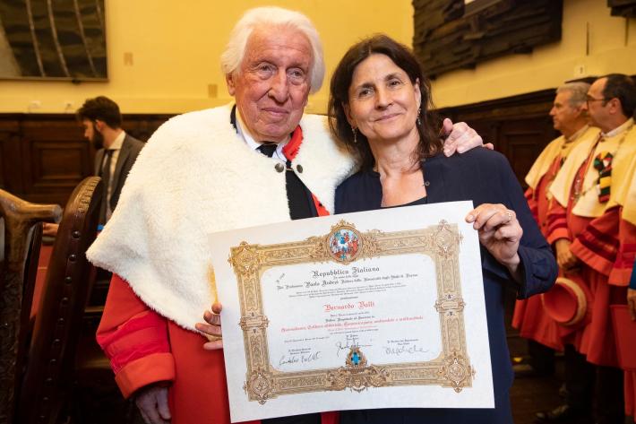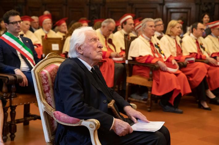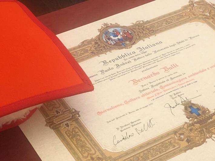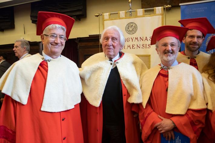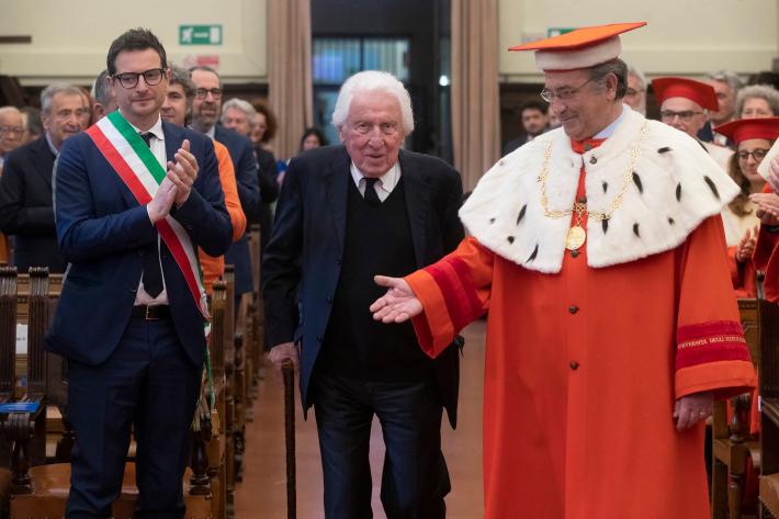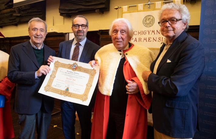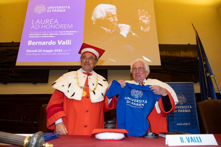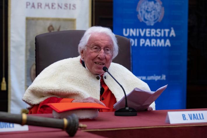 Questa mattina l’Università di Parma ha conferito a Bernardo Valli la laurea magistrale ad honorem in Giornalismo, cultura editoriale, comunicazione ambientale e multimediale. La cerimonia, a inviti, si è svolta nell’Aula Magna della sede centrale dell’Università. Dopo l’intervento del rettore Paolo Andrei è stato Diego Saglia, direttore del Dipartimento di discipline umanistiche, sociali e delle imprese culturali, a leggere la motivazione del conferimento, mentre la laudatio per il candidato è stata pronunciata da Marco Deriu, presidente del corso di laurea in Giornalismo, cultura editoriale, comunicazione ambientale e multimediale. A seguire Bernardo Valli ha tenuto la sua lectio doctoralis, intitolata La difficile ricerca della verità