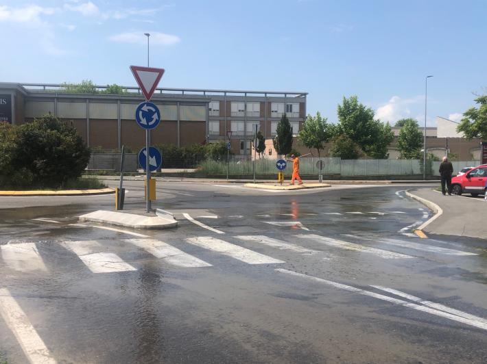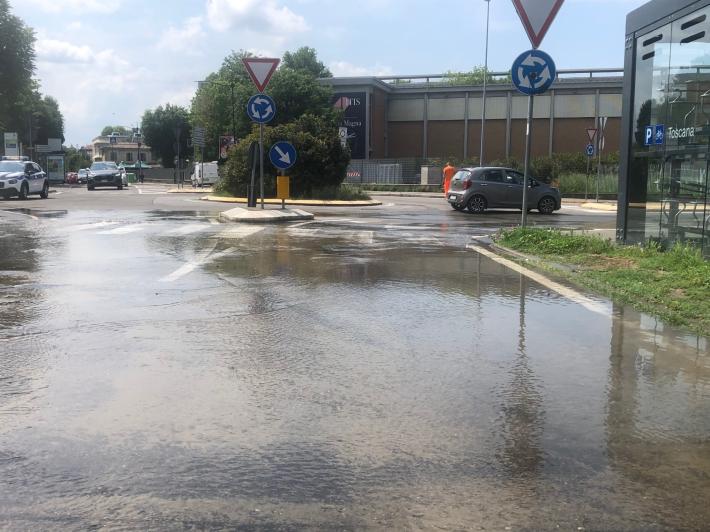Si rompe una tubatura: strada allagata in via Toscana - Le foto