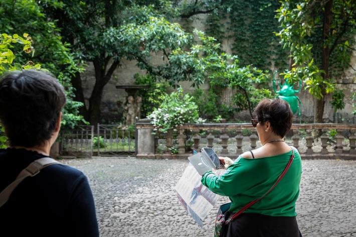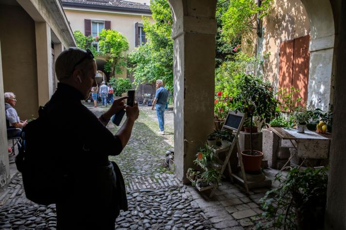 Nascosti dietro un portone o un cancello, tra i muri di una casa storica o di un palazzo, nel retro di una bottega si trovano alcuni giardini nascosti. Che sono stati riscoperti stamattina e oggi pomeriggio - si prosegue anche domani - grazie a Interno Verde, la manifestazione che ha messo a disposizione di parmigiani e turisti più di 40 giardini eccezionalmente aperti al pubblico dai loro proprietari (famiglie, istituzioni, aziende). Una volta muniti di pass e della mappa, si è pronti per immergersi in una natura inaspettata, perchè all’interno di un contesto urbano. A fare da guida, alcuni volontari e studenti delle scuole superiori cittadine. Un itinerario tra fiori, piante, specie vegetali di tutti i tipi, pannelli informativi, cimeli, opere d’arte. Due giorni dedicati «ai curiosi, a quelli che davanti a un portone chiuso iniziano a sognare i giardini che non possono vedere».