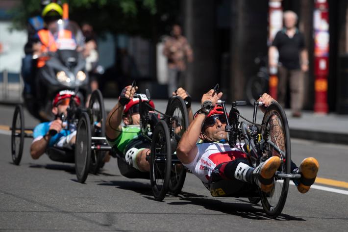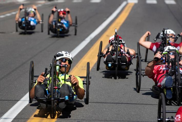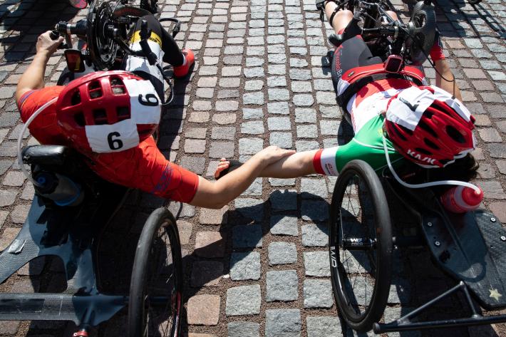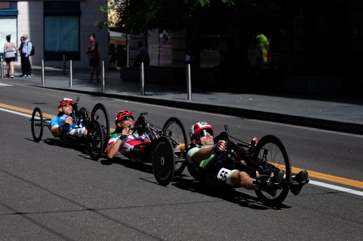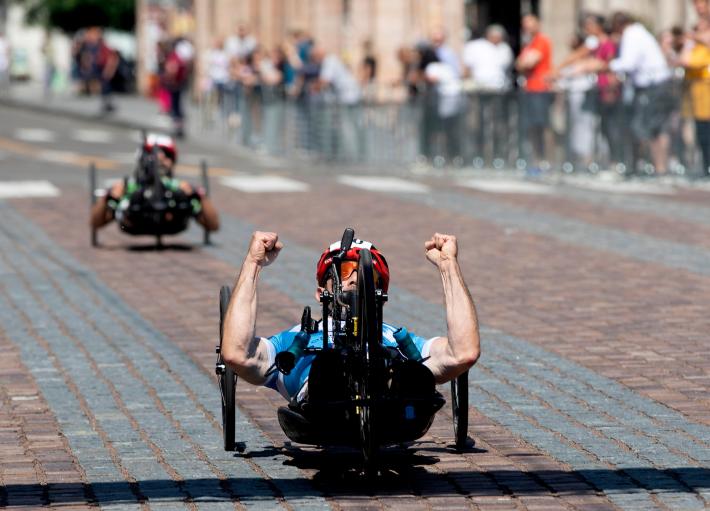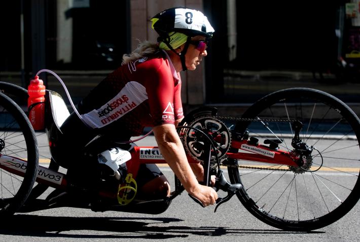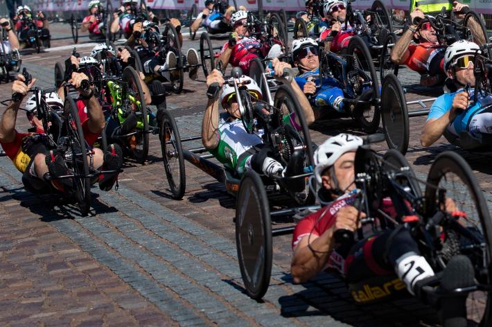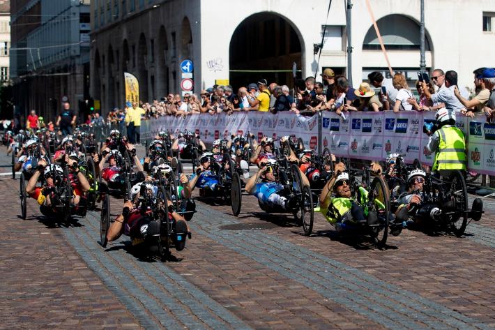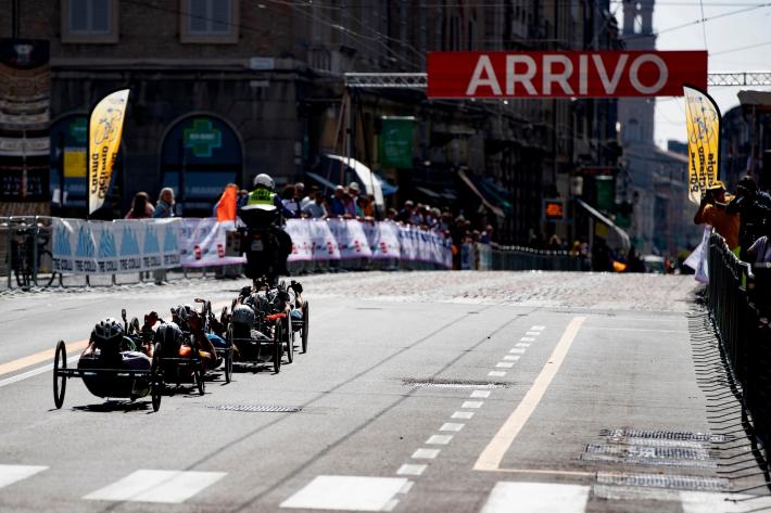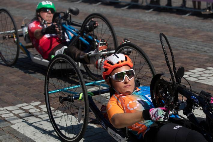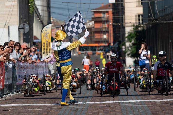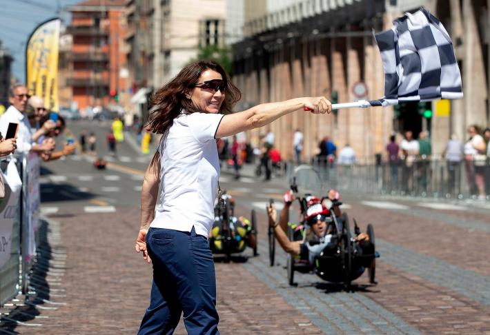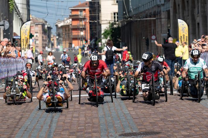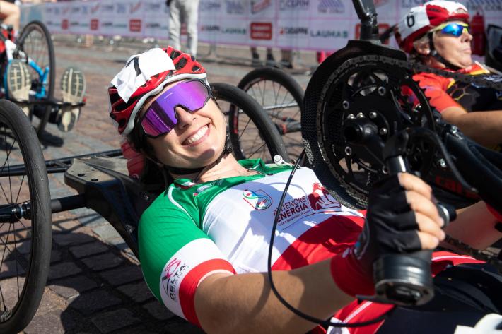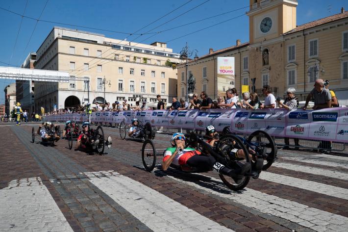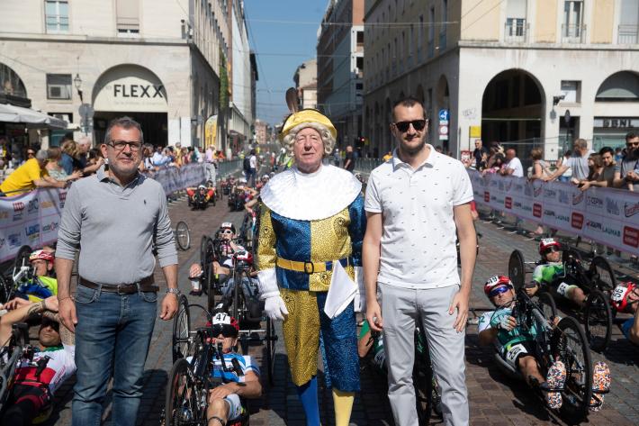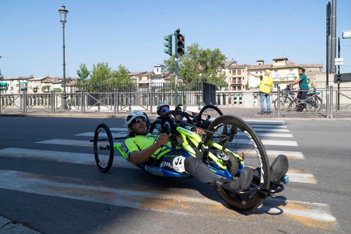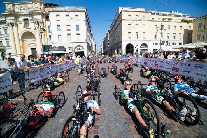 Veronica Frosi, Andrea Botti e gli altri atleti nella «1HHandbike», organizzata da Scuola Ciclismo Parma e Comune di Parma: