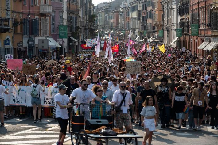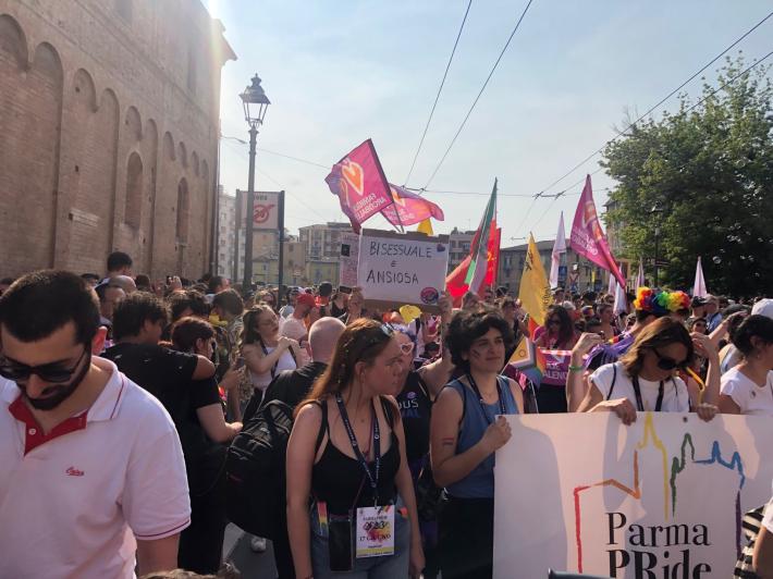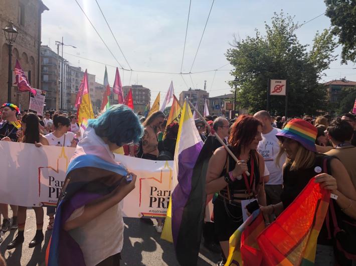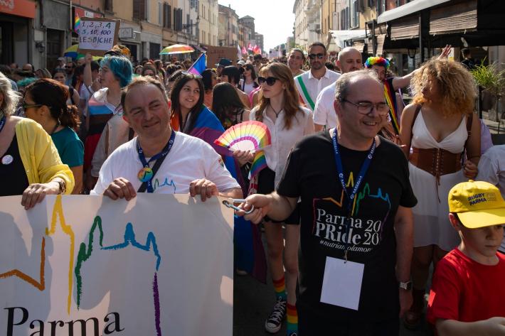 Anche a Parma - come in altre 10 città italiane - oggi è il giorno dell'orgoglio (pride, in inglese) omosessuale. E anche Parma è stata attraversata dall’Onda pride, la grande manifestazione a sostegno dei diritti delle persone lgbtqi+. Sono, infatti, oltre duemila i partecipanti al secondo Parma Pride che stanno sfilando da via D'Azeglio fino al parco ex Eridania. In testa al corteo gli assessori Caterina Bonetti e Chiara Vernizzi. Al parco Primo Maggio, dopo i saluti e gli interventi istituzionali, ci sarà musica dal vivo con: DAH, Antonella Lo Coco, Sam&Stan e DJ Walkman. Madrina della serata è Nicoletta Paci.
