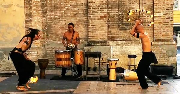 In piazzale San Bartolomeo esibizione della compagnia messicana Quetzalcoatl con i suoi rituali dedicati alle divinità azteche e alla cultura del fuoco. Quetzalcoatl è infatti il nome del dio serpente piumato dell’antica Mesoamerica, venerato presso molte civiltà messicane e centro-americane.