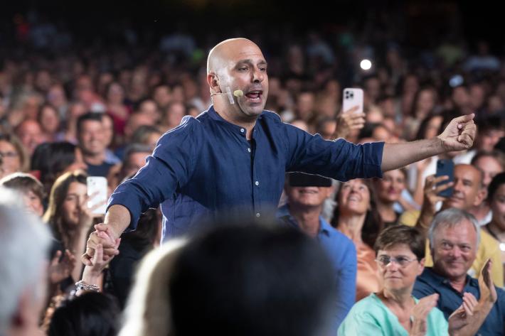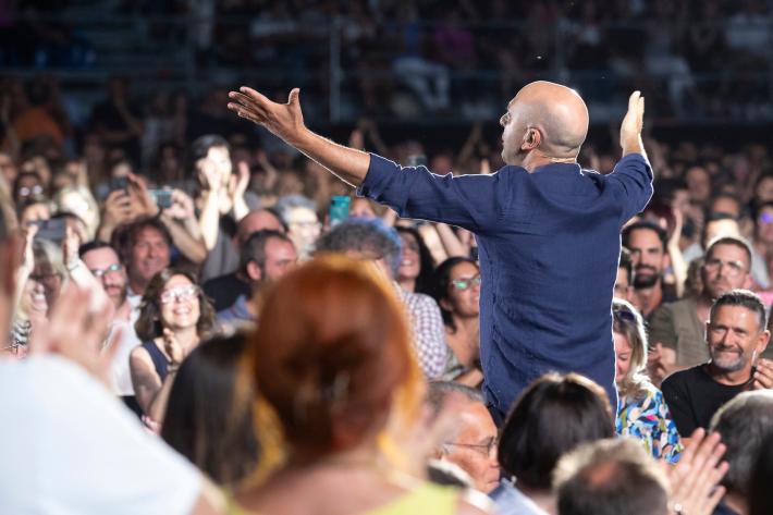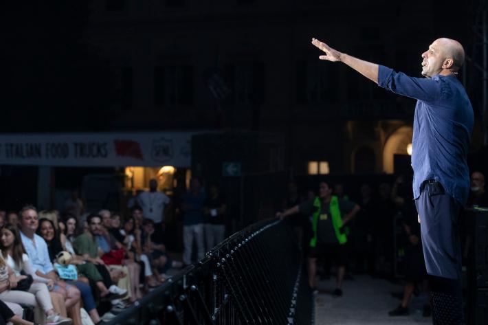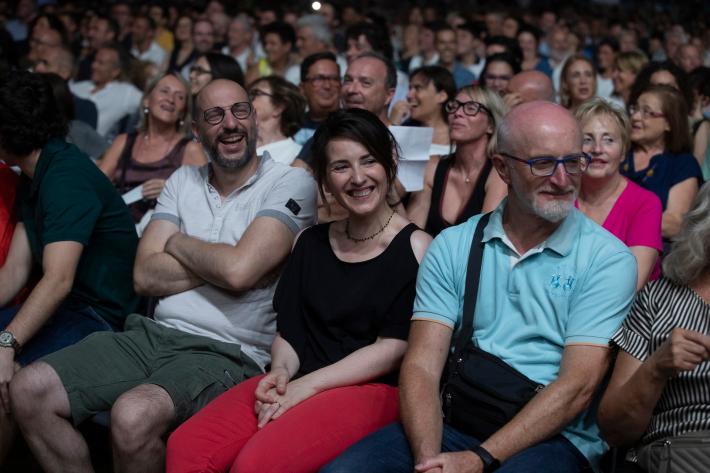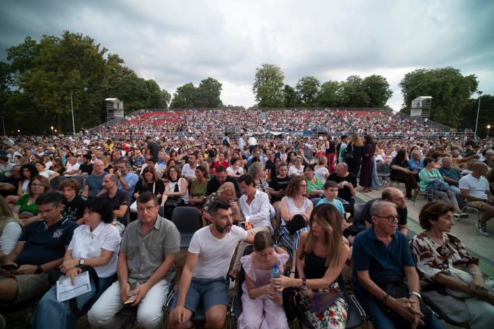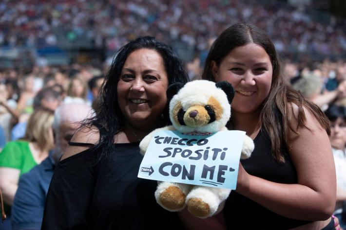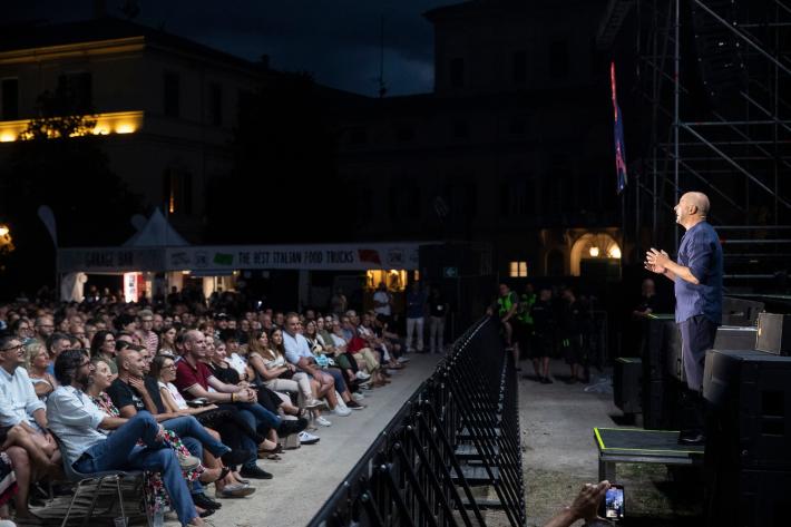 Grande successo di pubblico questa sera per Checco Zalone al Parco Ducale nonostante lo spettacolo sia iniziato un po' in ritardo.