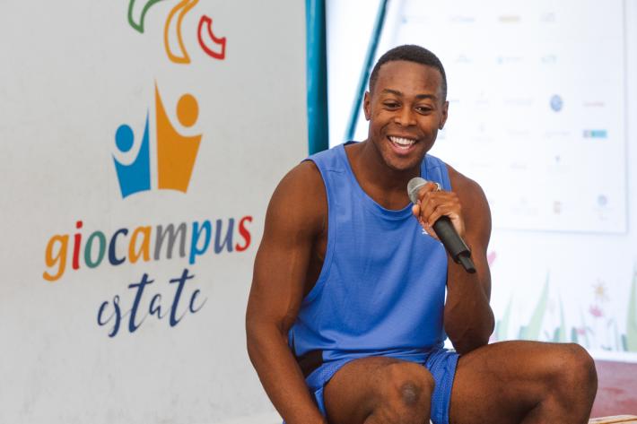 Il campione olimpico Fausto Desalu è stato ospite di Giocampus Estate. Ecco una foto-cronaca della mattinata con bambini e ragazzi negli scatti di Luca Bertozzi.