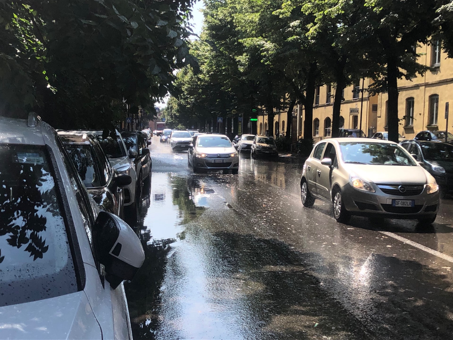 Numerose chiamate al 115: i vigili del fuoco stanno intervenendo in viale Fratti dove sono straripati dei tombini, e in via Puglia (strada per andare a Carignano) e in strada Ambolana (Campus) dove sono cadute delle piante.