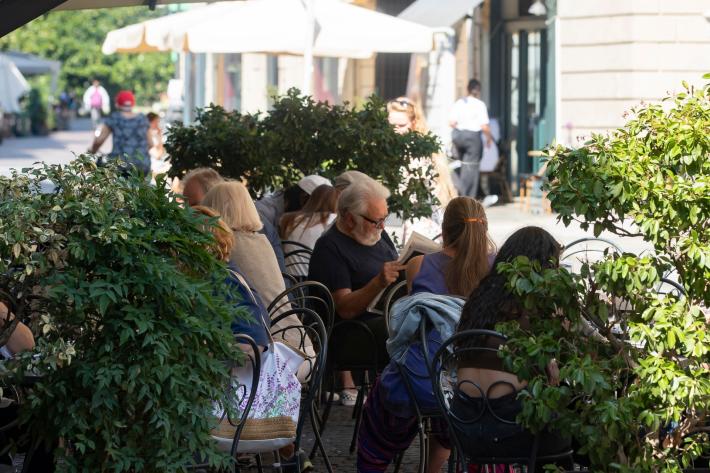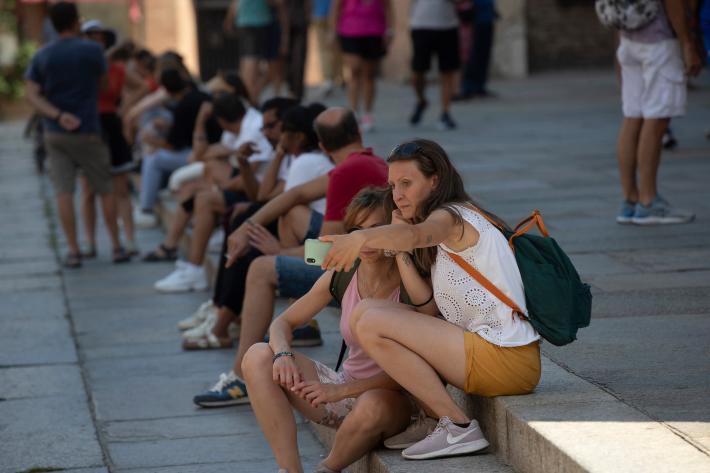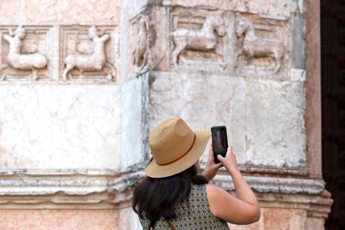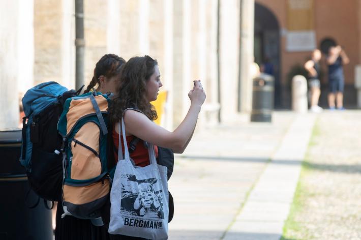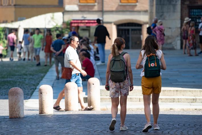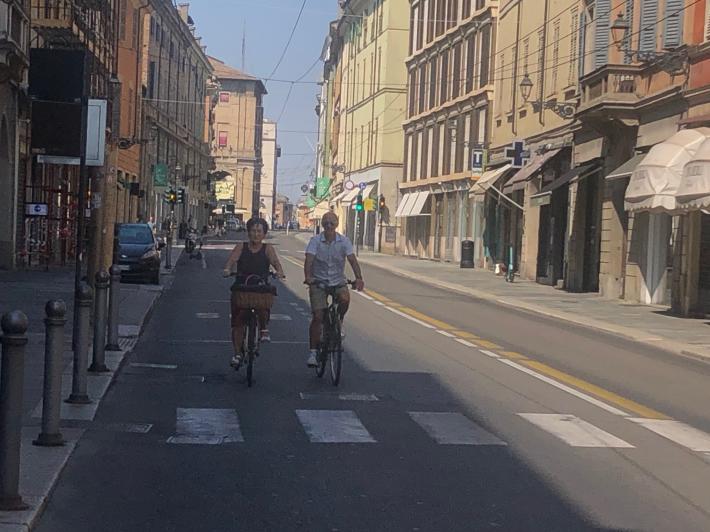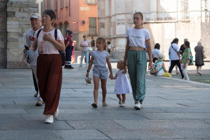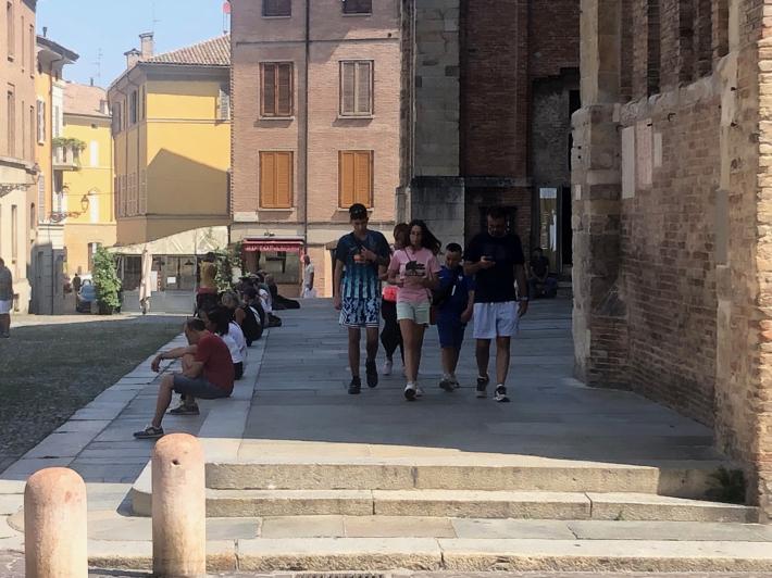 La mattinata di Ferragosto è trascorsa tranquilla in centro a Parma. Pochissimo traffico nelle principali strade: spazio a pedoni e ciclisti. C'è chi è rimasto in città - e magari ha fatto tappa ai tavolini di qualcuno dei bar rimasti aperti - e ci sono turisti che vanno alla scoperta dei monumenti, magari "armati" di smartphone per le foto e i classici selfie, come si vede in queste foto di Anna Rita Melegari.