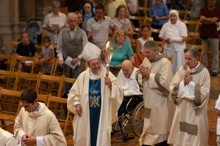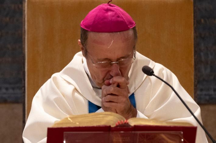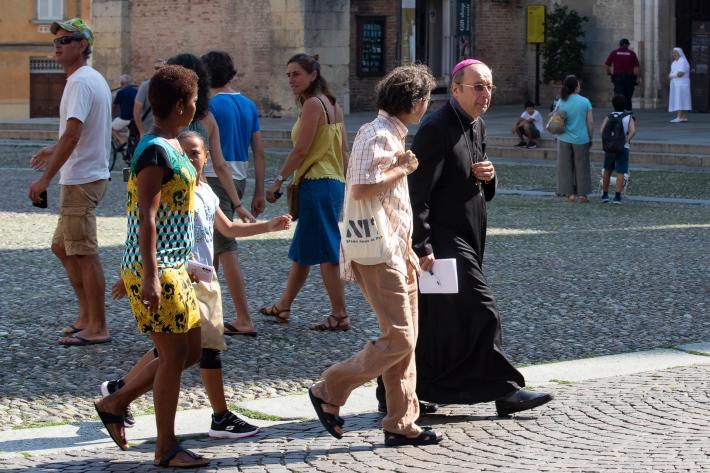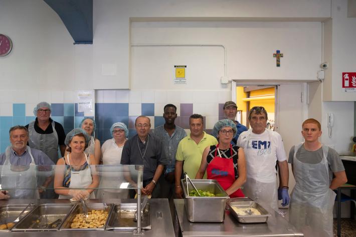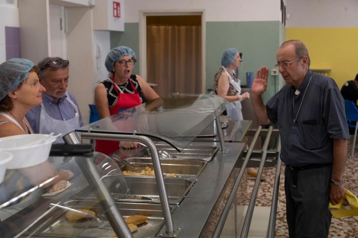 In mattinata il vescovo Enrico Solmi ha celebrato la messa per la festa dell'Assunta in Duomo, poi ha fatto visita al personale in servizio alla mensa della Caritas in via Turchi.