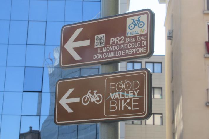 Un altro itinerario, «Il mondo piccolo di Don Camillo e Peppone» (PR2), inizia imboccando via Trento: c’è un cartello di piccole dimensioni in via Monte Altissimo.