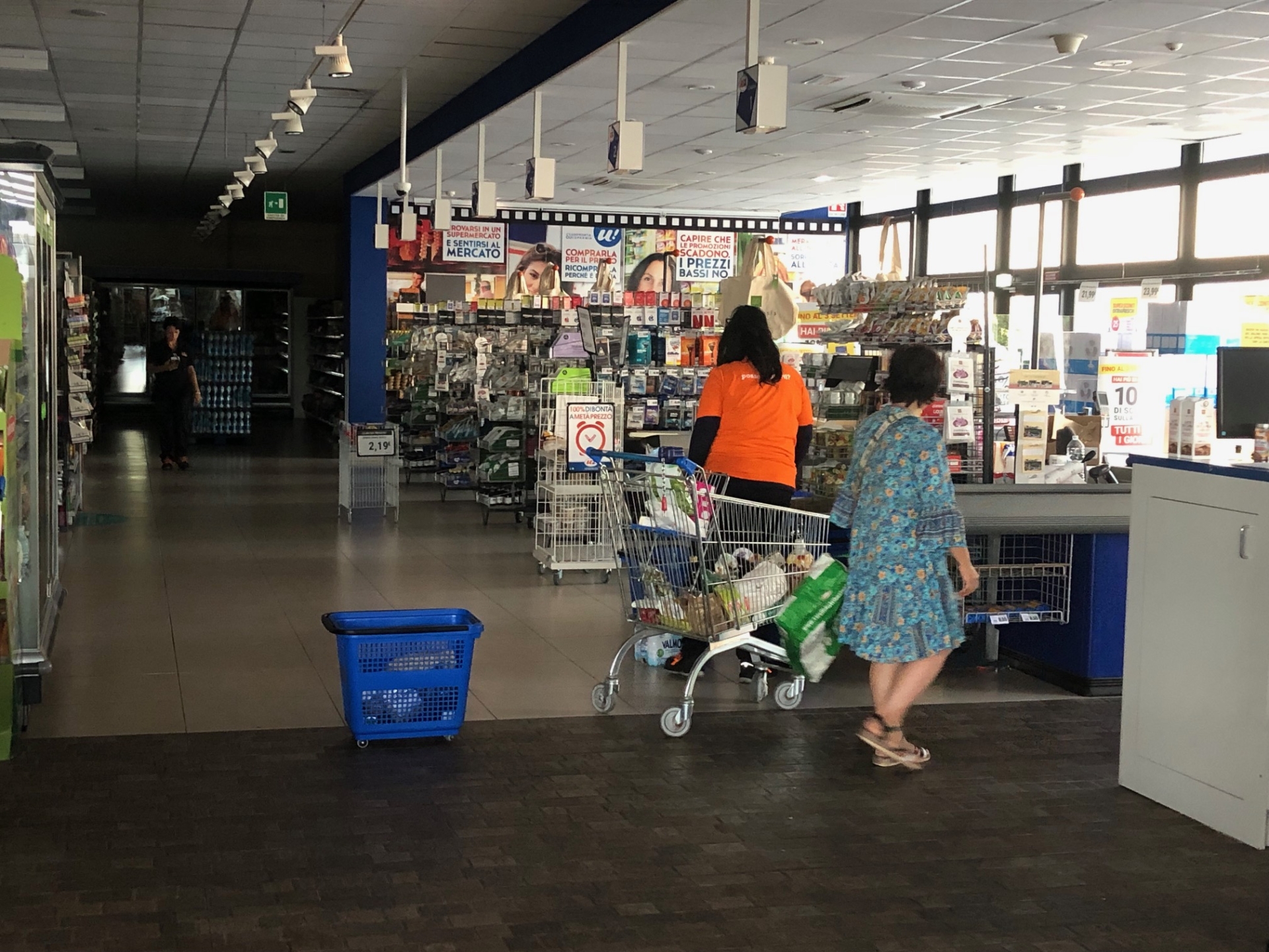 (Nelle foto i clienti di un supermercato di via Tartini che si sono trovati improvvisamente senza luce e senza la possibilità di pagare alle casse)